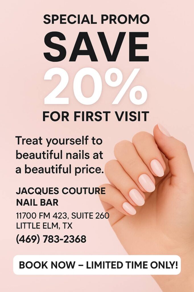 Every service at Jacques Couture Nail is crafted with precision and passion. Our talented artists combine trend-savvy creativity with masterful techniques to design nails that perfectly reflect your style. From timeless classics to fashion-forward designs, each set is a statement—delivered with unmatched skill and attention to detail.